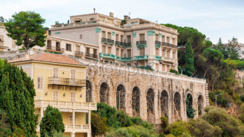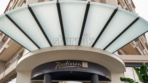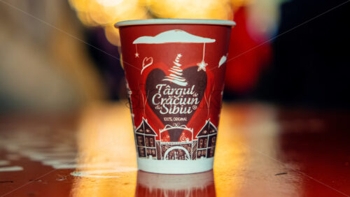 Video – Close up of a refreshing red orange cocktail with orange slice and ice cubes, captured outdoors on a sunny day in Cannes. Vertical