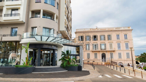 Video – Cannes, France – October 13, 2025: People enjoying drinks and conversation at a stylish beach bar with large umbrellas and tropical plants
