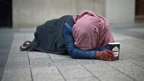 VIDEO A homeless woman begging on the street Royalty Free Stock Video Footage
