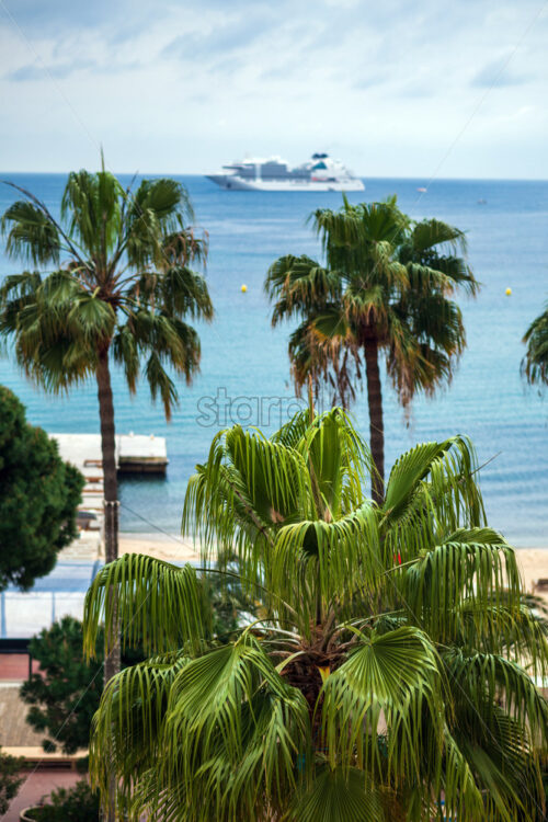Video – Distant view of boats moving on the sea in Menton, the French Riviera. Vertical