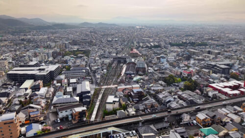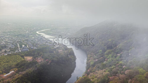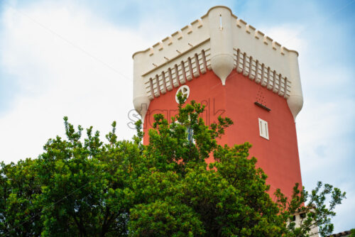 Video – Cannes, France – October 4, 2025: Rear view of a red convertible Ferrari car driving through a city street