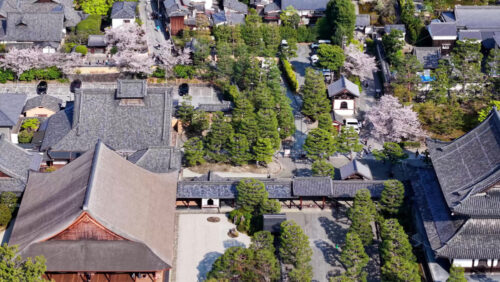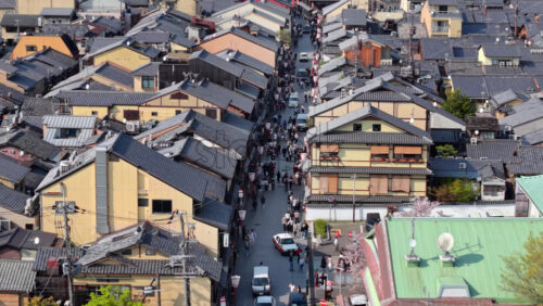 Video – Rear view of a beige baby stroller moving along a narrow alley with yellow and brown walls