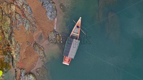 Close up of a red and black boat hull reflecting on calm turquoise water Royalty Free Stock Video Footage