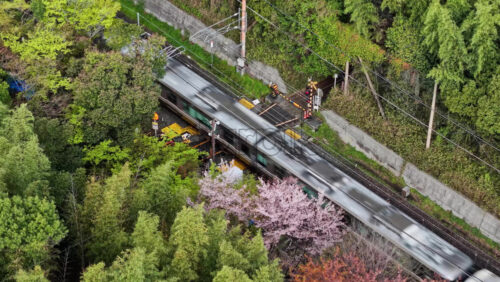 Video – Cannes, France – October 11, 2025: Two workers wearing protective white suits and respirators sand and repair the hull of a boat in dry dock