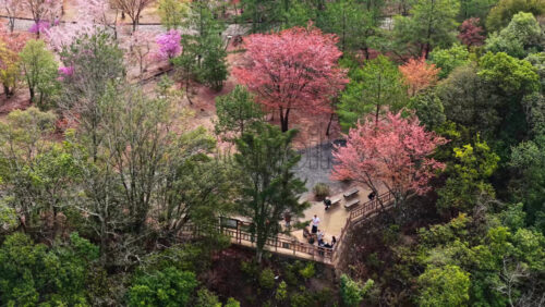 Video – Wooden walkway surrounded by palm trees leading to a sunny beach with clear blue water