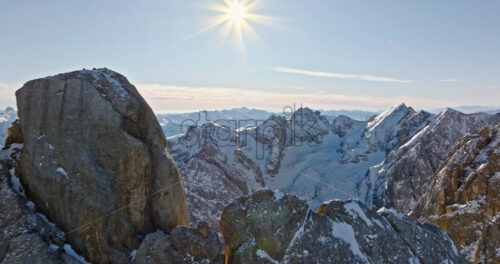 Video – Vertical aerial drone top view of the city center with moving traffic in sunlight. Bucharest, Romania