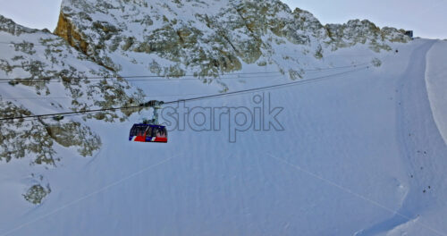 Bucharest, Romania – March 03, 2024: Vertical aerial drone view of a downtown intersection with moving traffic and walking people in sunlight. Waving national flag Royalty Free Stock Video Footage
