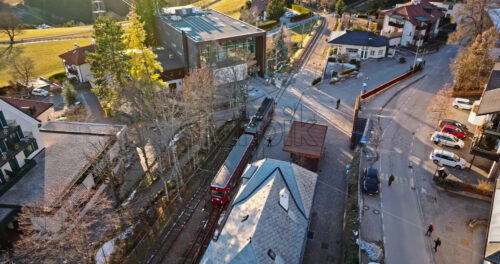 Video – Bucharest, Romania – March 03, 2024: Vertical aerial drone view of a downtown road with moving traffic and walking people. Sunny day