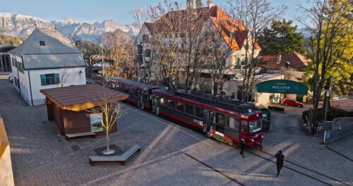 Video – Aerial drone view of a village. View of multiple residential buildings, country road with moving car, bare trees. Sunny weather. Moldova