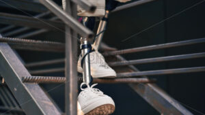 Video – Young woman tying her shoelaces at outdoors training, road. Slow motion
