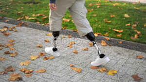 Video – Young blonde woman in sportswear running on the road at outdoors training. Slow motion
