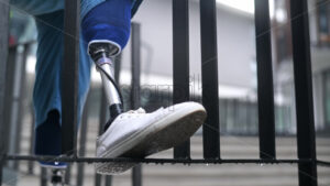 Young blonde woman in sportswear walking along a multicolored wall at outdoors training. Slow motion Royalty Free Stock Video Footage