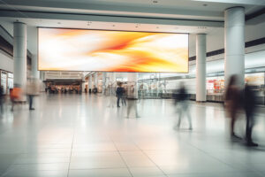NEW YORK, USA – SEPTEMBER 19, 2019: Microsoft store with lots of people inside. Vibrant colors