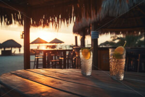 Video – Raindrops gently hit a wooden table surrounded by colorful autumn leaves. A simple flower vase adds charm to the cozy outdoor setting on a rainy day.