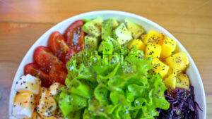 Video – Hands holding a pancake with dried fruits an nuts on a white plate