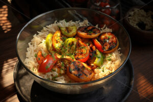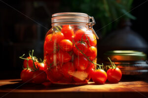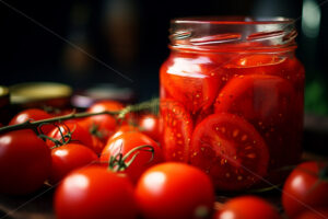 Video – Woman in a blue robe cutting up tomatoes on a wooden board in the kitchen