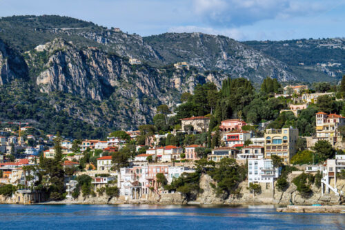 Video – Serene view of the moon and pastel pink clouds over the Mediterranean Sea at dusk