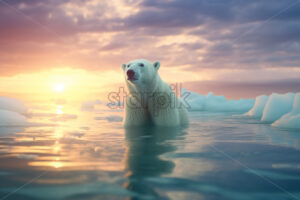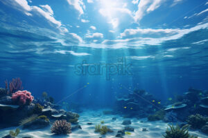 Video – A seabird swims gracefully near rocky coastal waters under warm sunlight