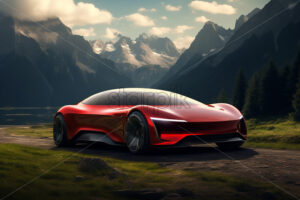 Video – Cannes, France – October 3, 2025: Red convertible Ferrari car driving through sunny city streets with palm trees and traffic