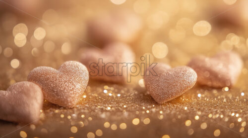Video – Close up view of multiple glass vessels softly illuminated with warm light that creates a golden bokeh effect in the background