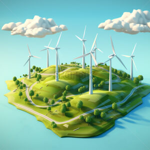 Video – Aerial drone view of Amager Bakke power plant chimney releasing smoke, with offshore wind turbines standing in the sea behind it in Copenhagen, Denmark. Vertical