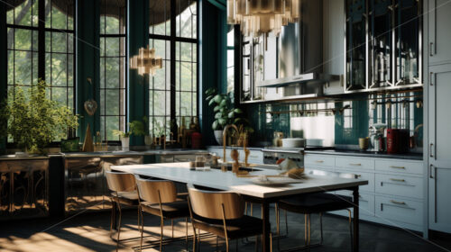 A woman in a dress from the 1920s in the yard of a luxury house from that time