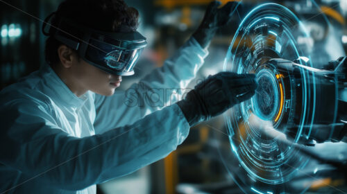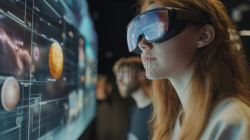 brain neuronal development, scientist wearing a high-tech headset with holographic screens decoded brain activity