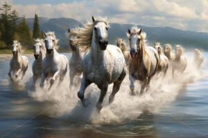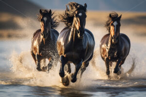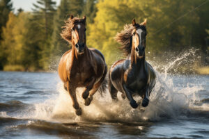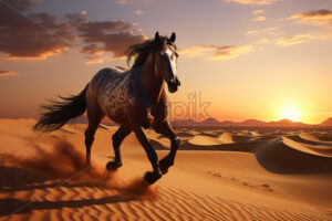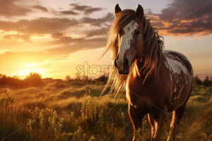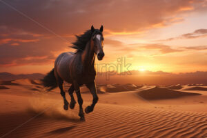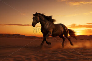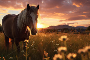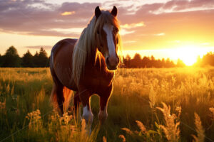 A graceful moment captured during a dressage routine, with sunset enhancing elegance.