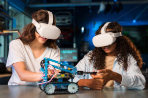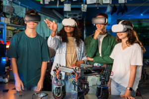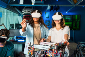 Video – A crane machine moving around with the blue sky and palm trees on the background