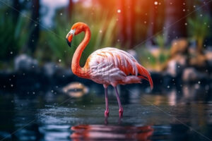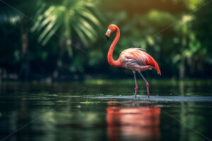 Video – Woman in a hot pink, shorts suit with tan high heels walking on a scenic terrace with a view of a calm body of water