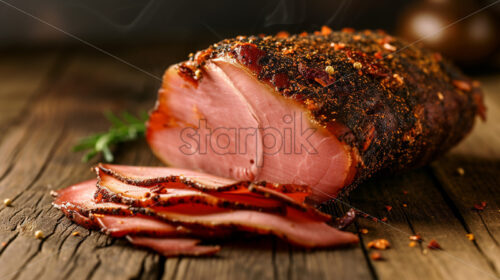 Delicious sliced meat on an old wooden table