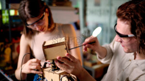 Video – Cannes, France – October 11, 2025: Two workers wearing protective white suits and respirators sand and repair the hull of a boat in dry dock