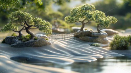 Rocks in a pond in the Japanese Gardens in Monaco Royalty Free Stock Video Footage