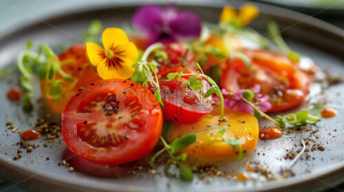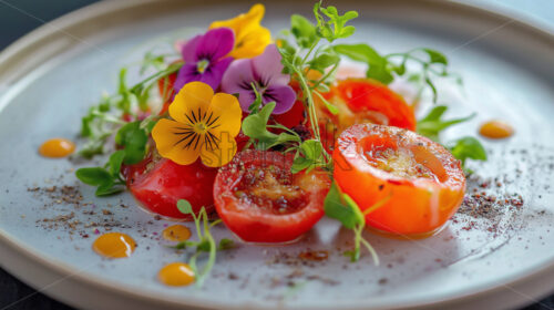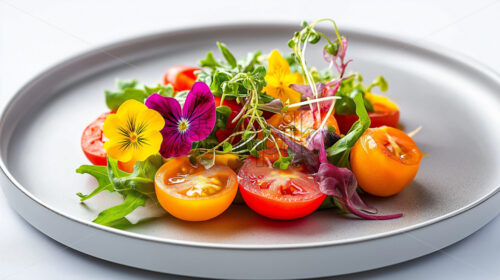 Video – White plate with a variety of uncooked pasta, noodles and cherry tomatoes on it