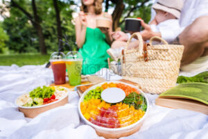 Video – A mother checking her phone while standing next to a baby carriage in the park