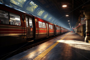 Video – Nice, France – July 7, 2025: Train moving on the railing through the station