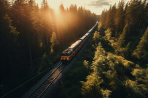 Video – A regional double decker train moves through the French Riviera landscape, framed by electric lines and vegetation