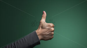 Hands in black medical gloves holding thermometer and pill pack. Blue background. Top view