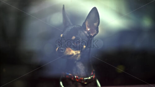 Video – Close up of a small dog sniffing the ground illuminated by warm sunset light