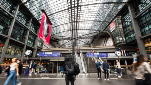 Video – Cannes, France – July 10, 2025: Passengers waiting as regional train pulls through a covered station platform