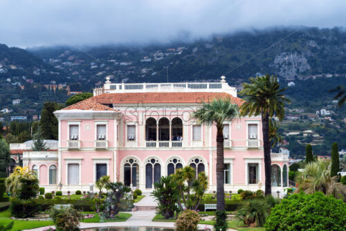 Cannes, France – October 16, 2025: Elegant black yacht sailing across calm sea with a scenic coastal city backdrop Royalty Free Stock Video Footage
