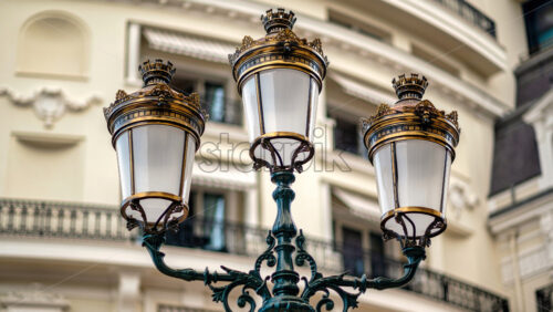 Video – Cannes, France – October 31, 2025: A cream colored Renault 4 glides down a city street, headlights glowing softly as it passes shopfronts and pedestrians