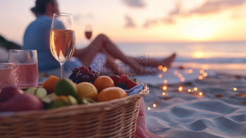 Video – Cannes, France – October 4, 2025: Woman in a colorful bikini walking along the sandy beach at sunset