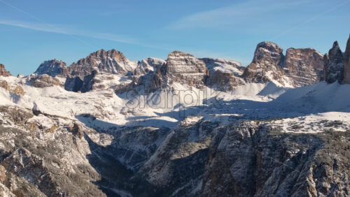 Video – Aerial drone view of a cemetery in Chisinau, Moldova. Multiple graves, crypts, walkway, Cloudy weather, bare trees, winter