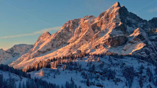 Video – Traditional wooden Christmas pyramid against a clear blue sky with levels representing nativity scenes at a Christmas market in France. Vertical