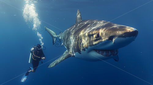 Bedouin nomad, adorned in traditional clothing, stands beside a caravan of camels, illuminated by warm, golden sunset light.