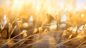 Video – Group of seagulls flying dynamically over the sea at sunset, with a sailboat visible in the distance