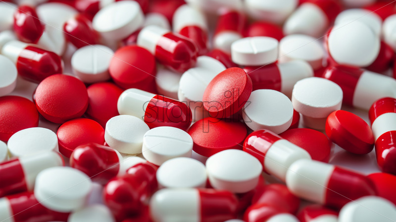 Scattered anti-radiation iodine pills, an empty jar, nuclear explosion on the background