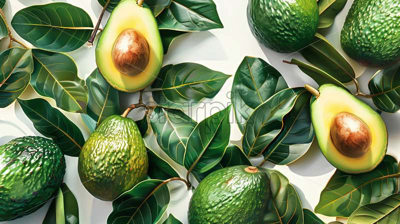 Home » Shop » Uncategorised » A background with avocado fruits and leaves