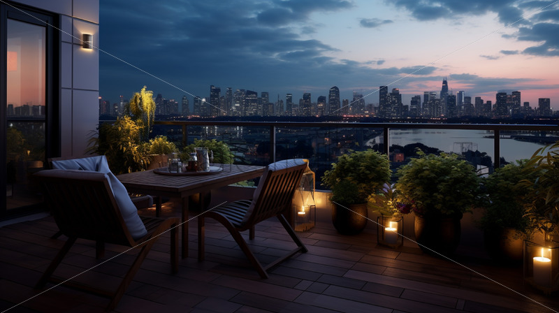 Home » Shop » AI Illustration » A balcony overlooking a wonderful city